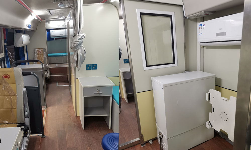 該車可取消空調 ,對應的車高為 3285;可選裝市電空調 ,選裝一體頂置市電空調時的高度為 3530mm,選裝分體頂置市電空調時的高度為 3630mm;可選裝遮陽棚 ;2.隨底盤可選裝封閉式、推拉式或局部推拉式側窗 ,乘客門玻璃可選擇推拉式 ;3.隨底盤選裝中開門 ;4.可選裝取消中開門時 ,車身左側選裝設置應急門 ;5.該車裝有車載冰箱 ,采血稱熱合機 ,X線機 ,醫療器械柜等醫療專用設備 ,主要用于醫療體檢 ,采血等功能 ;6.ABS系統生產廠家 /型號 :廣州市科密汽車制動技術開發有限公司 /CM4XL-4S/4M;7.發動機大凈功率 :171kW(YC6J245-50)、 176kW(WP6.245E50)。 | ||