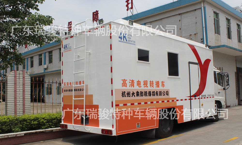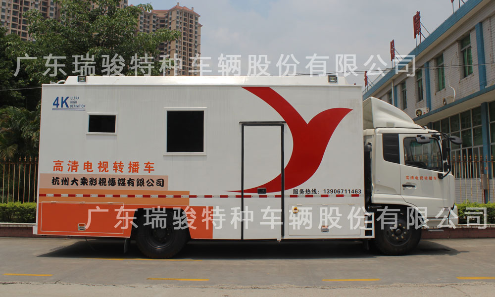 大型電視轉播車 車體部分:機頭:人18.480車體:主箱體,航空復合蒙皮車體,側拉車長7.45m,行程1.4m。