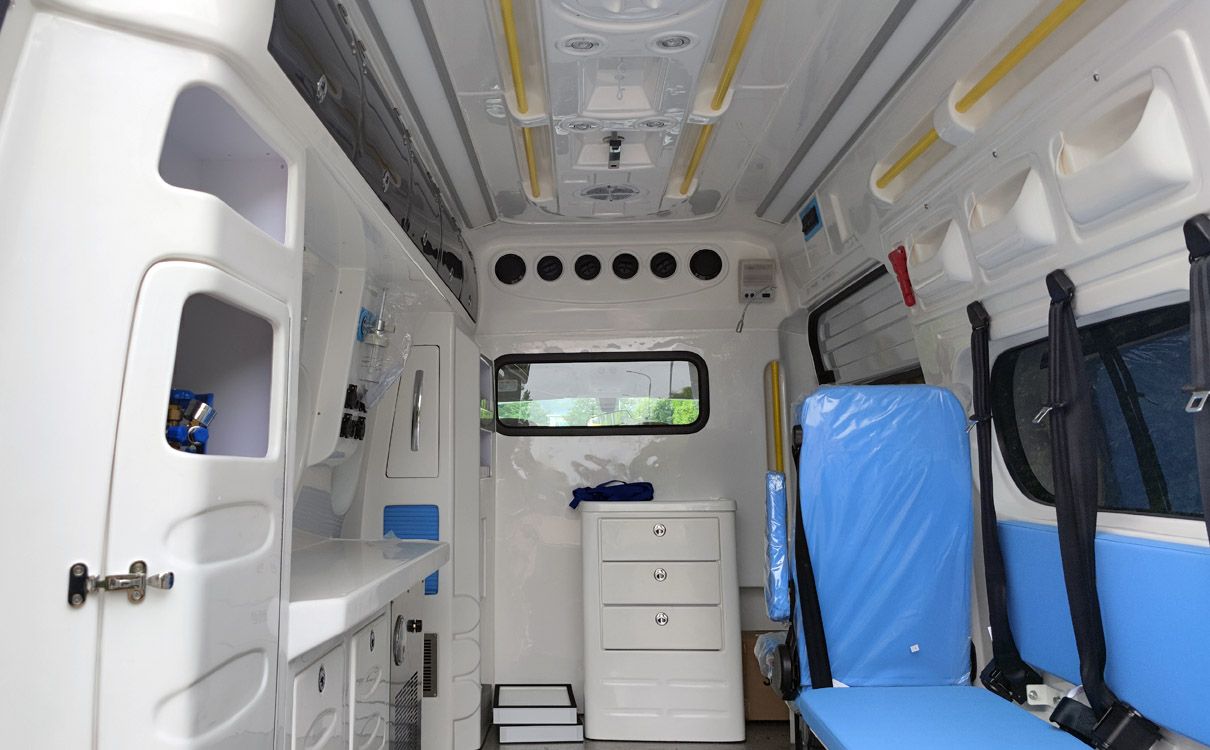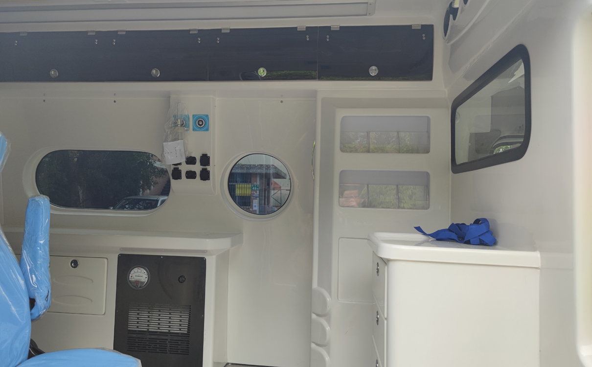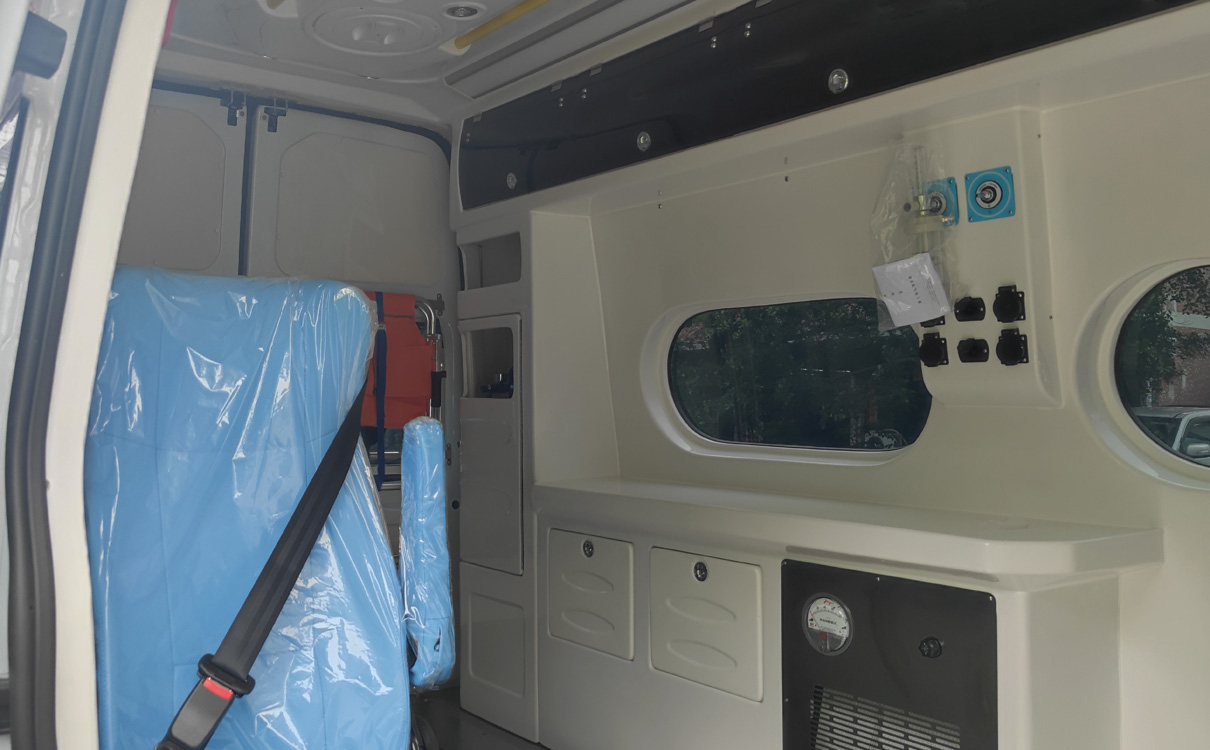 車尾頂部后尾翼爆閃、醫療艙內部 LED 手術射燈、醫療艙內部叁“回”型 LED 隱藏式照明燈(避免燈光直射病人眼睛造成刺痛感)、駕駛室可獨立控制醫療倉內部所有燈光